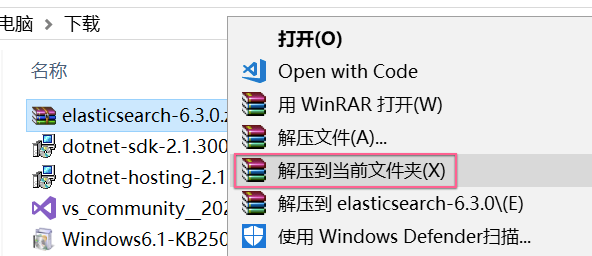 1、 下载完成后,选中elasticsearch-6.3.0.zip