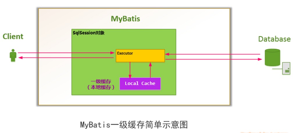 如下图所示,MyBatis会在一次会话(sqlSession对象)中创建一个本地缓存(local cache),对于每一次查询,都会尝试根据查询的条件去本地缓存中查找是否在缓存中,如果在缓存中,就直接从缓存中取出,然后返回给用户;否则,从数据库读取数据,将查询结果存入缓存并返回给用户。