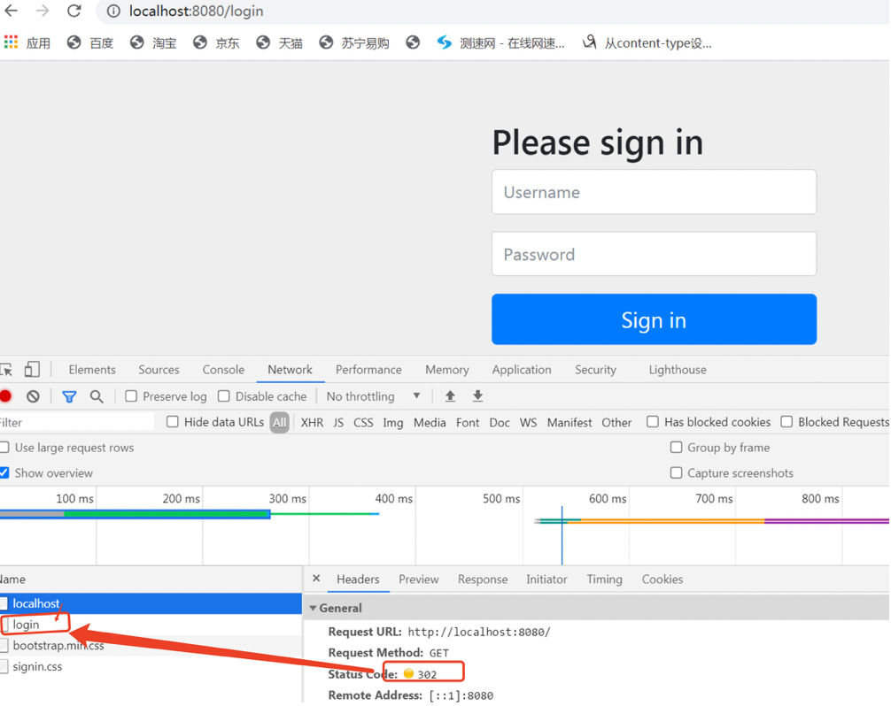 • /login(get): get请求时会跳转到这个页面,只要我们访问任意一个需要认证的请求时,都会跳转到这个登录界面。