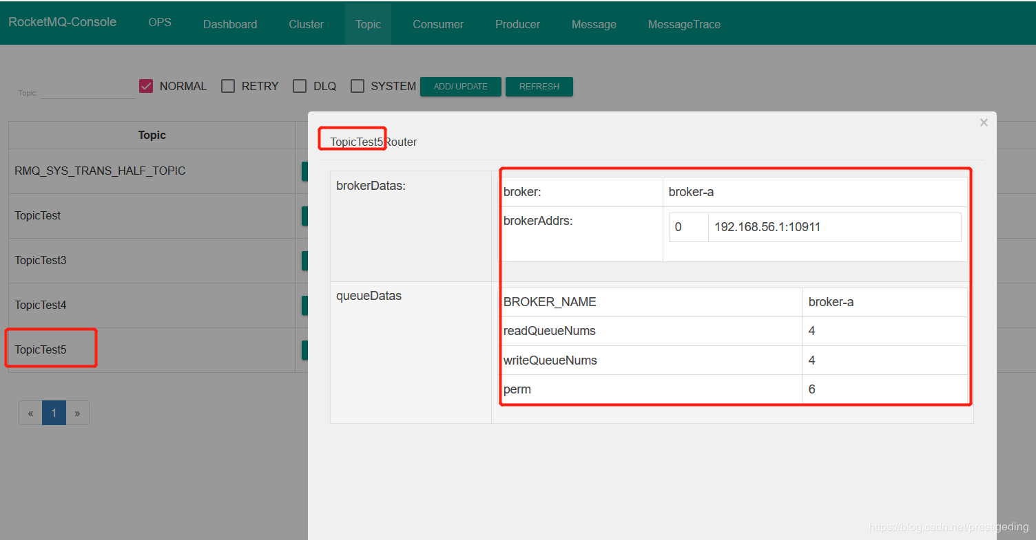 • topicTest5只在broker-a服务器上创建了队列,并没有在broker-b服务器创建队列,不符合期望。