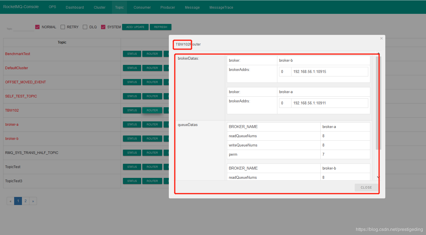 我们再来看一下RocketMQ默认topic的路由信息截图如下: