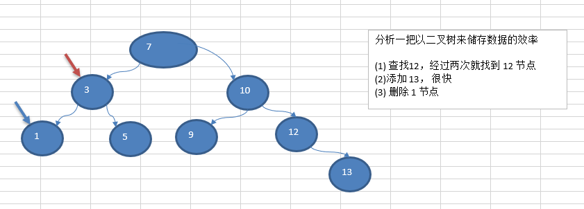 能提高数据存储,读取的效率, 比如利用 二叉排序树(Binary Sort Tree),既可以保证数据的检索速度,同时也可以保证数据的插入,删除,修改的速度。【示意图,后面详细讲】